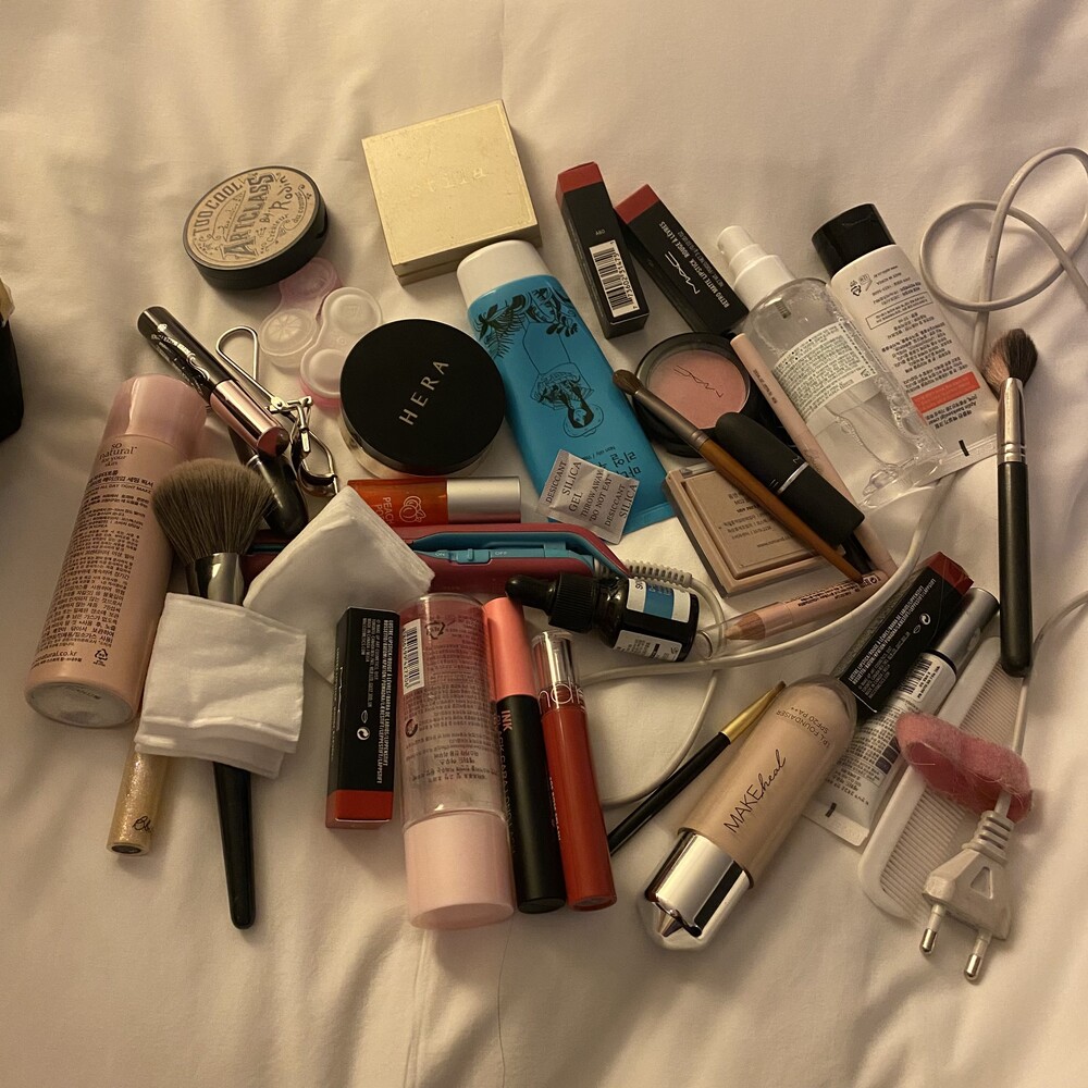 메이크업 제품들 여러가지 담을 때는