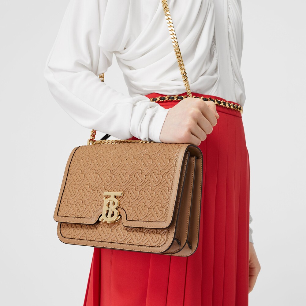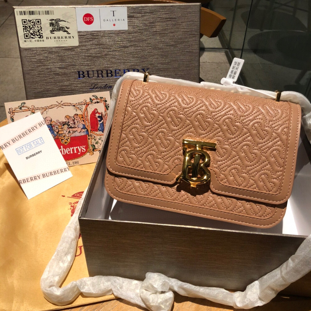 [Burberry] BBR Burberry TB word buckle embossed pattern chain one-shoulder free shipping bag, soft calfskin, three colors, size: 19x15, gift box special offer