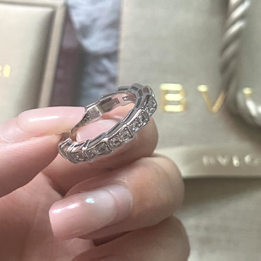 【Overseas Points Exchange】 Bvl overseas points exchangeSnake bone full of diamonds narrow ringColor: Platinum/Rose GoldImported Asian gold material, electroplating 18K goldInlaid with Swarovski rhinestones + Au750Not for sale full set of points gift box packaging
