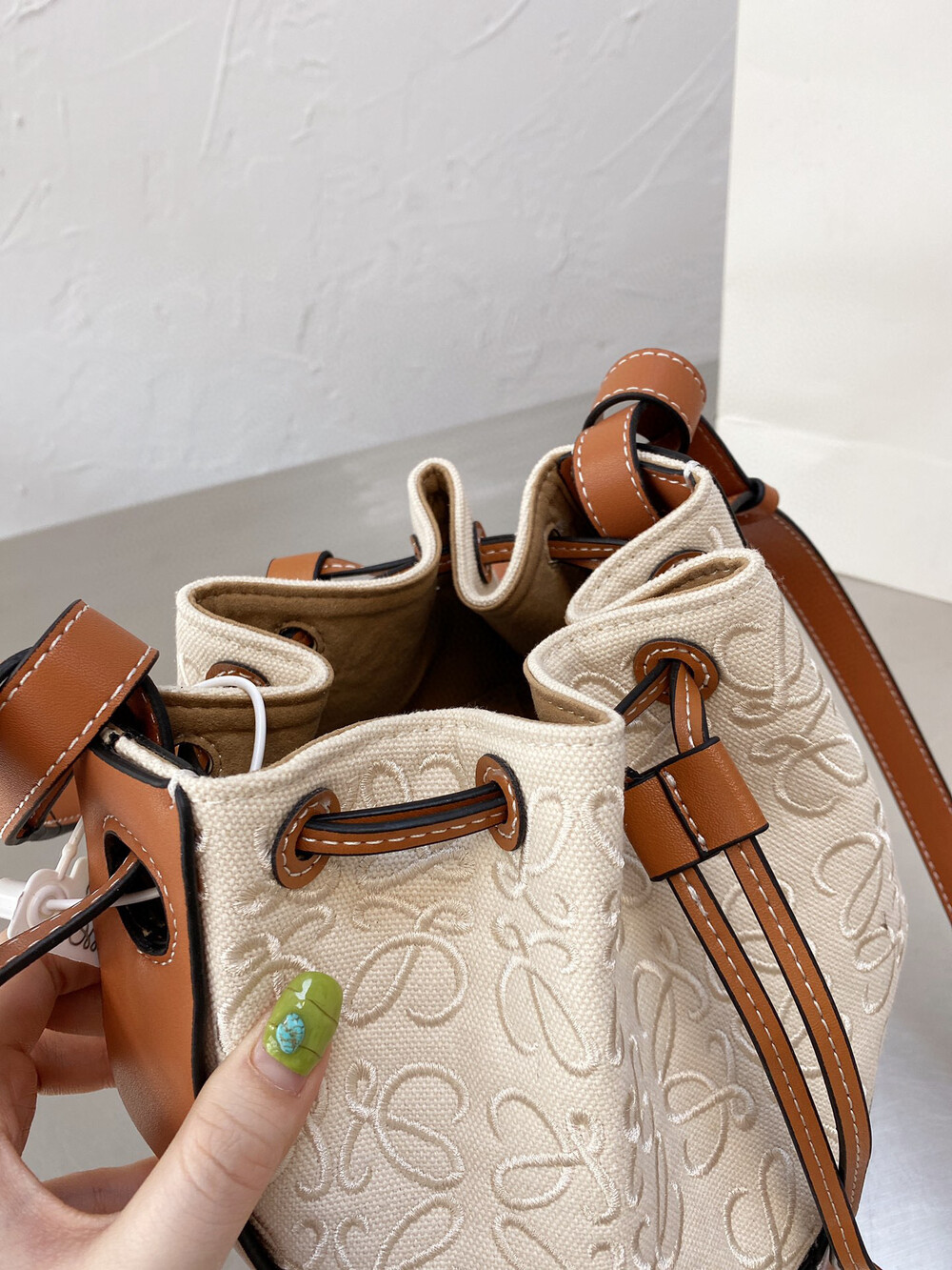 Duty free shop gift serie - loewe / Embroidered cowhide stitchingLoewe spliced bucket bag shipped here~ Don’t buy LV buckets on the street again. Loewe’s bag really looks more attractive as you look at it. If you don’t want to buy a bag that is easy to hit, choose this one. It can be backed on both sides. The stitching on the outside is also beautiful. The capacity is large enough and the weight is relatively light. It is convenient to go out and play. Size 25 18