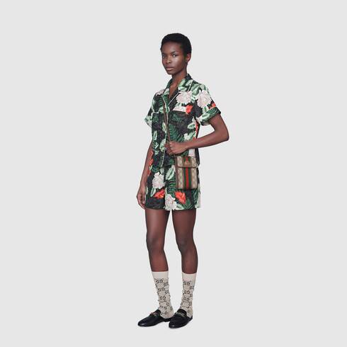 친환경 소재로 제작된 베이지/에보니 GG 수프림 캔버스와 브라운 가죽 트리밍