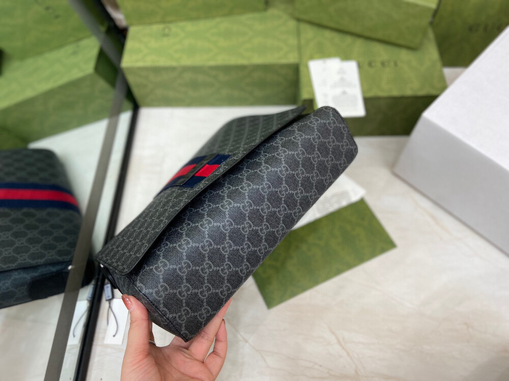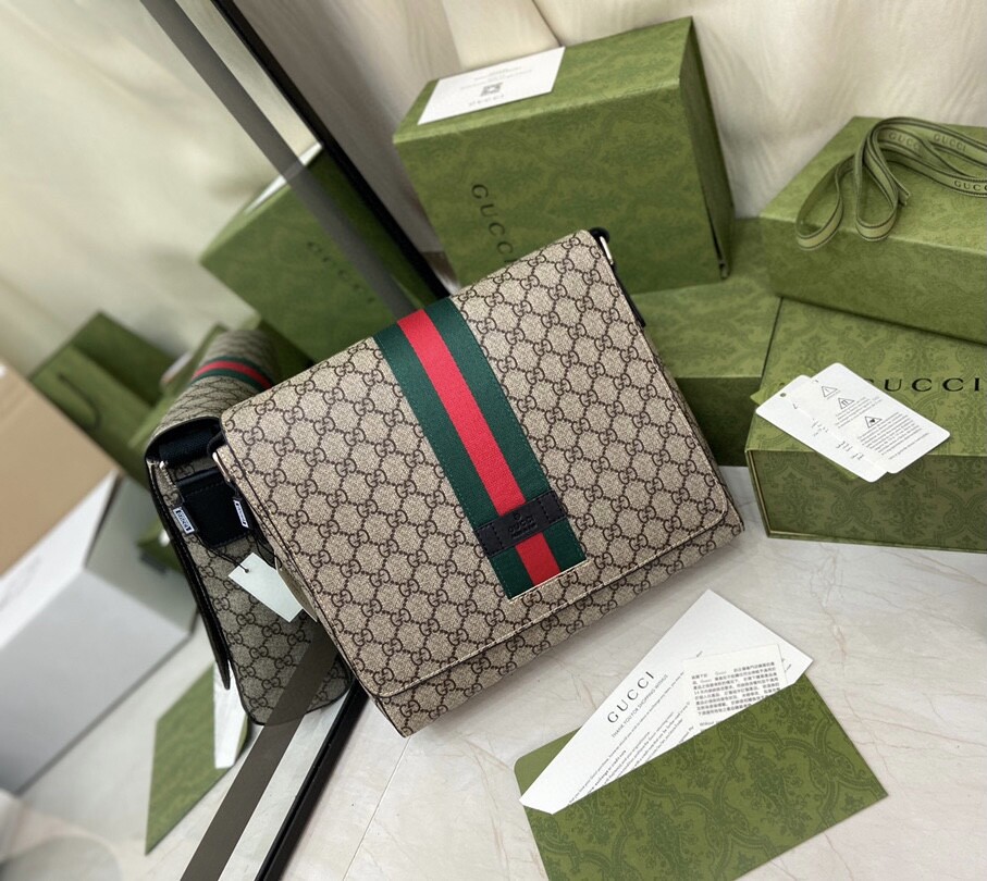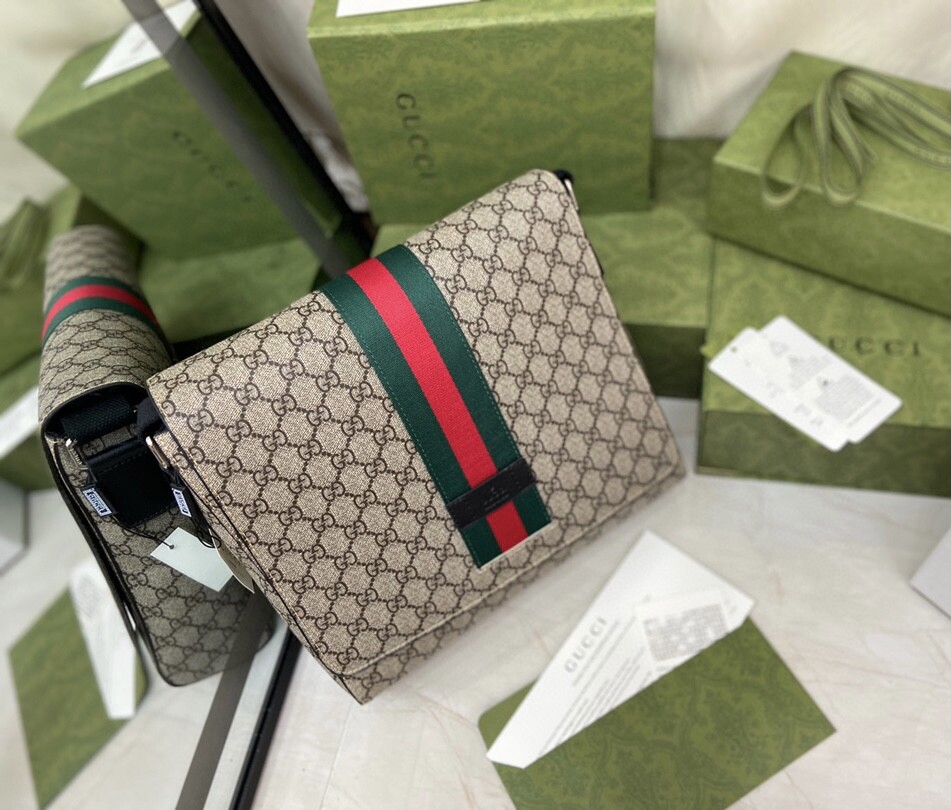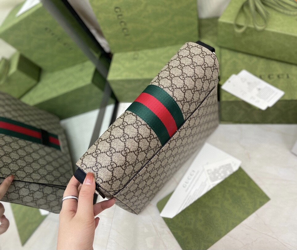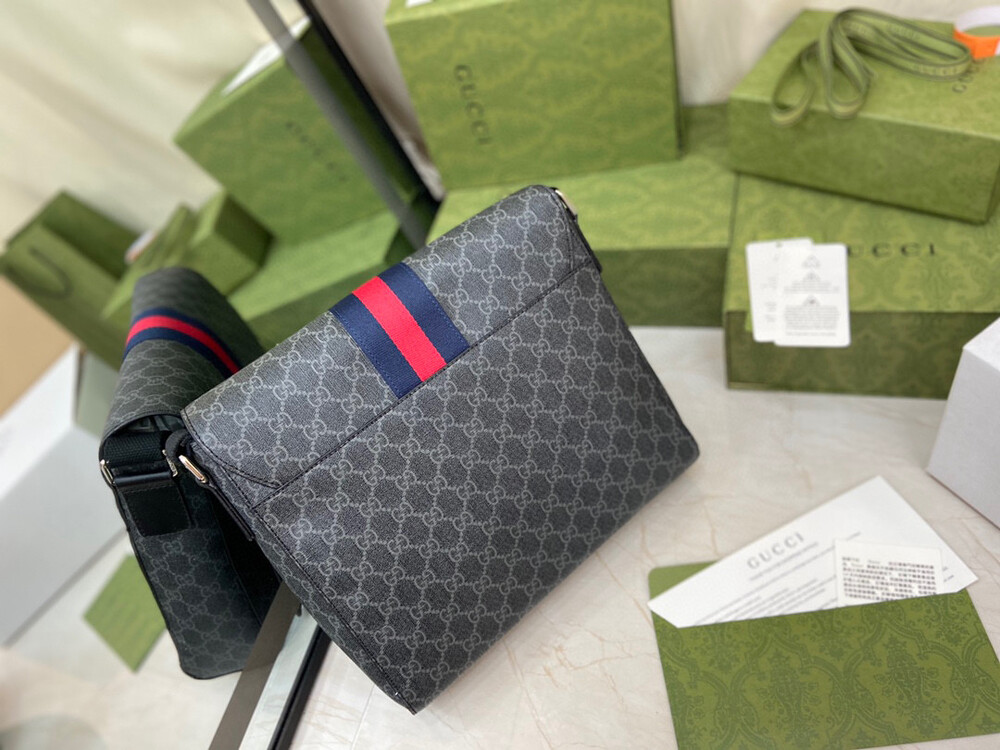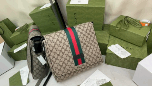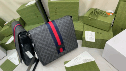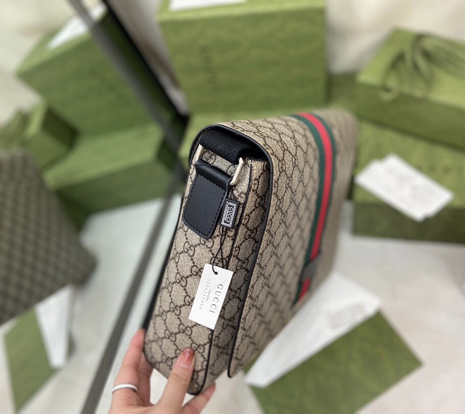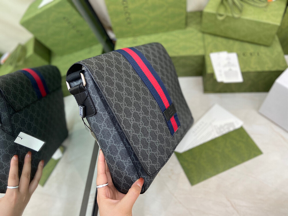 classic messenger bag briefcase, new arrival. The body of the bag is made of GG special waterproof canvas with red and green webbing, the original leather, with a customized version of thick metal buckle, flip design, the capacity is very