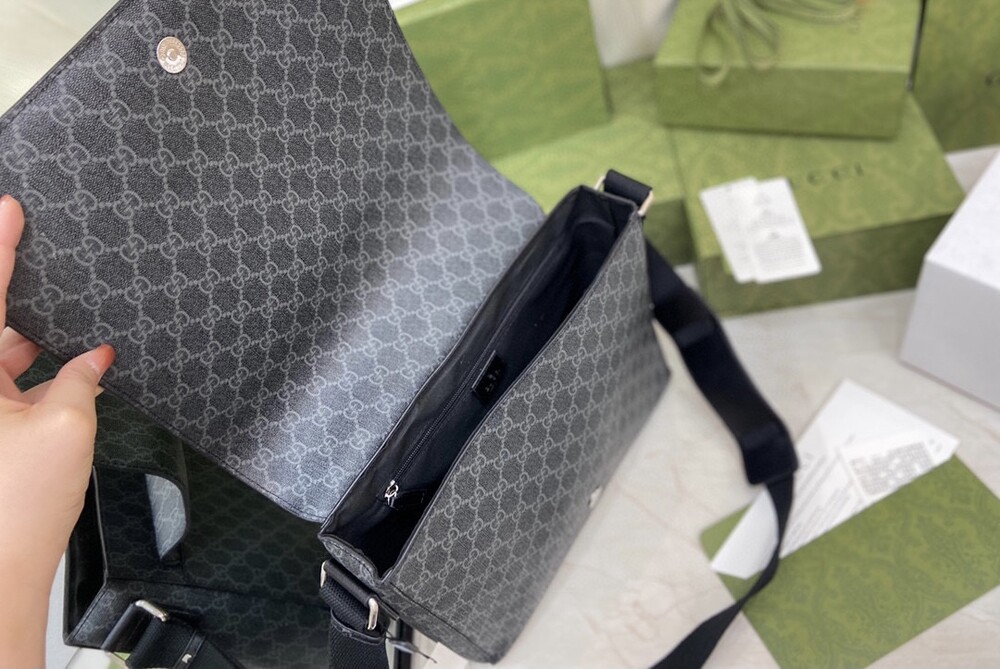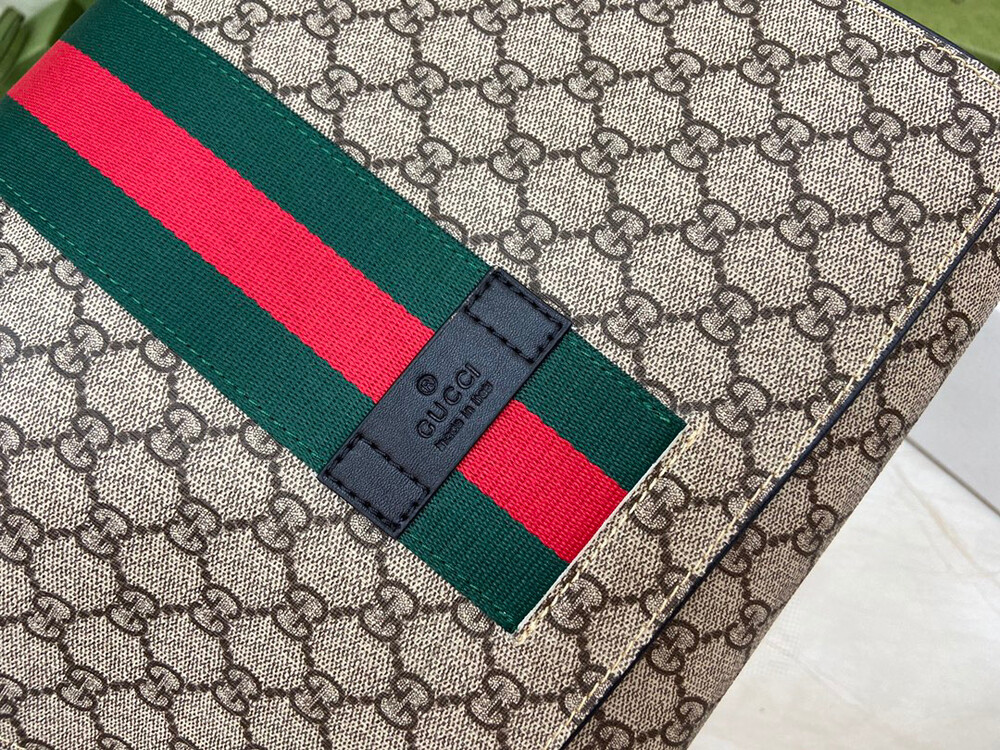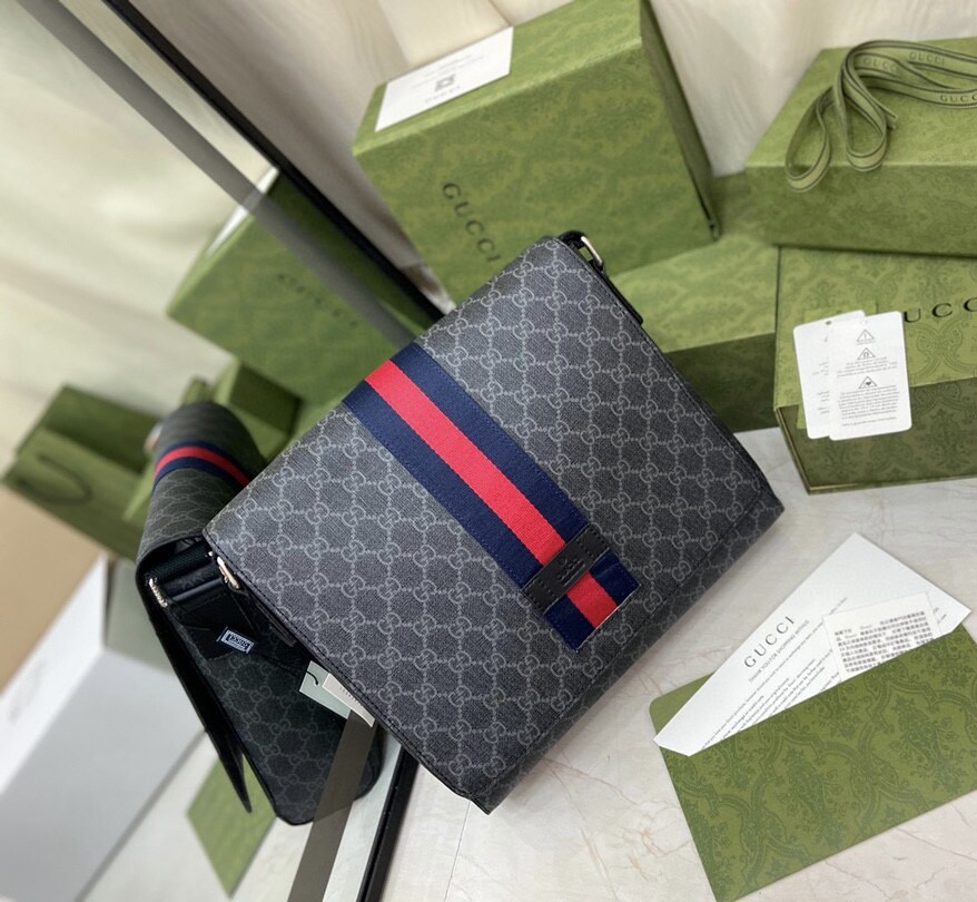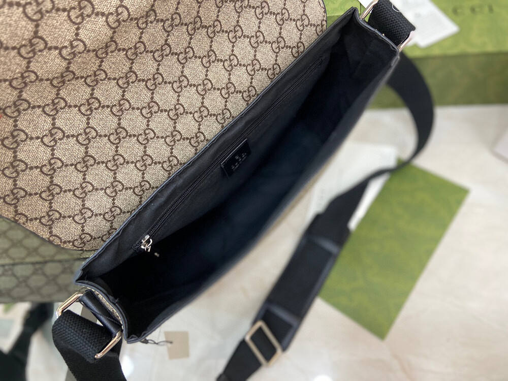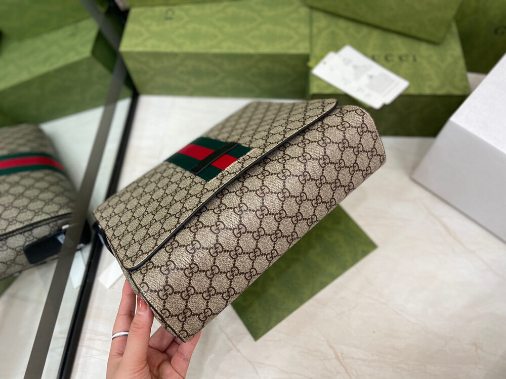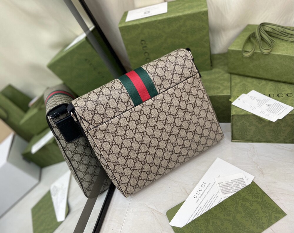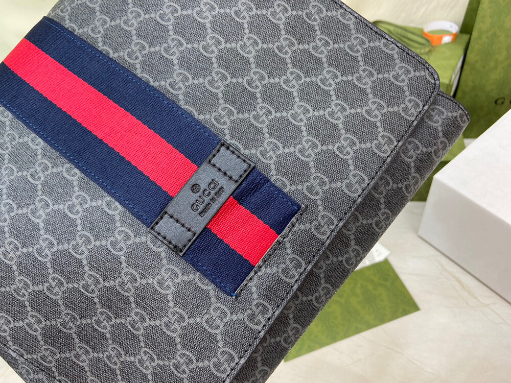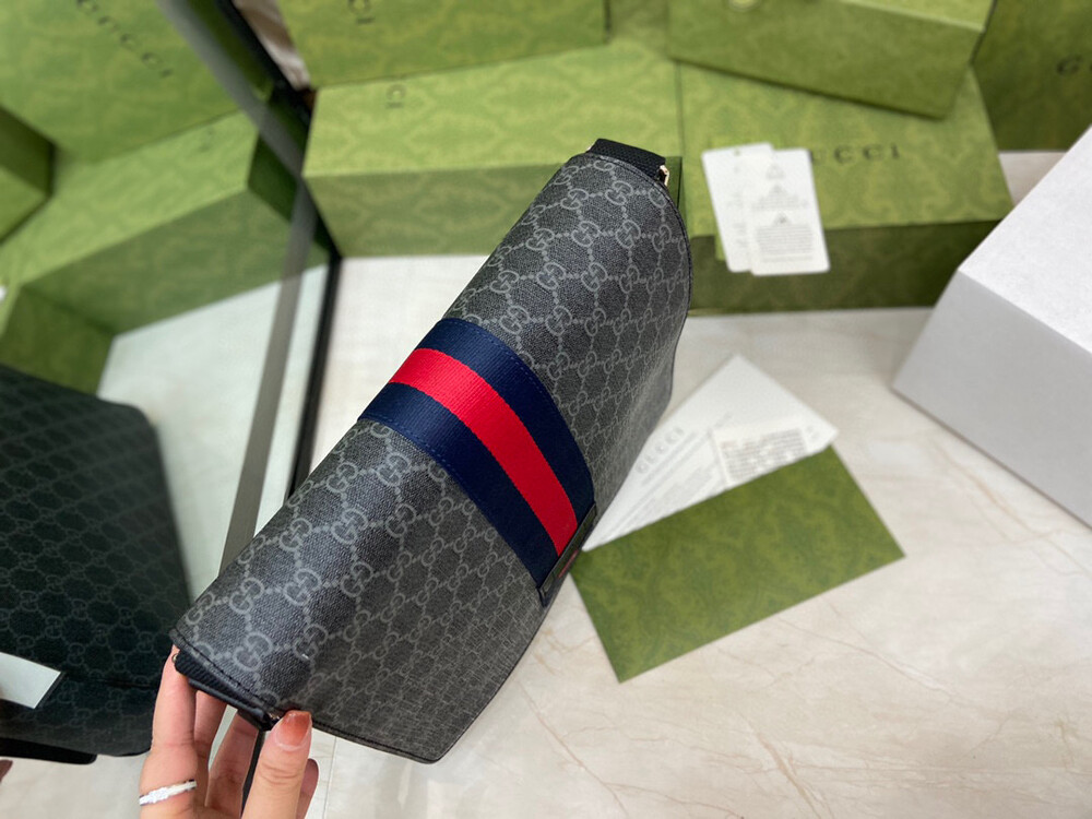 classic messenger bag briefcase, new arrival. The body of the bag is made of GG special waterproof canvas with red and green webbing, the original leather, with a customized version of thick metal buckle, flip design, the capacity is very