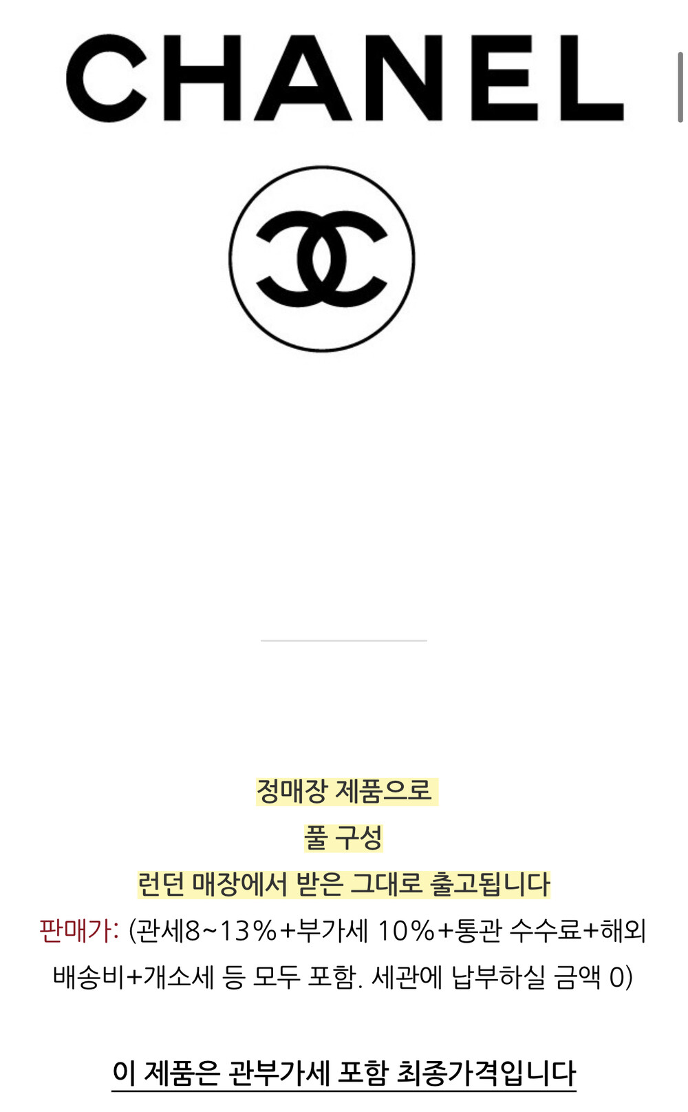 관부가세 포함 최종가