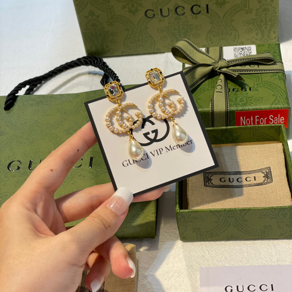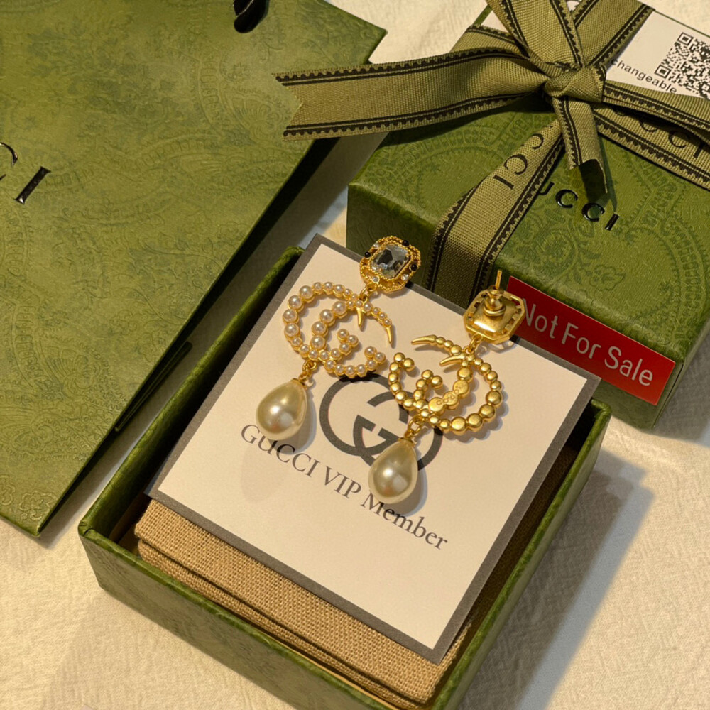 𝐆𝐔𝐂𝐂𝐈·Water drop double G pearl earringsBrass