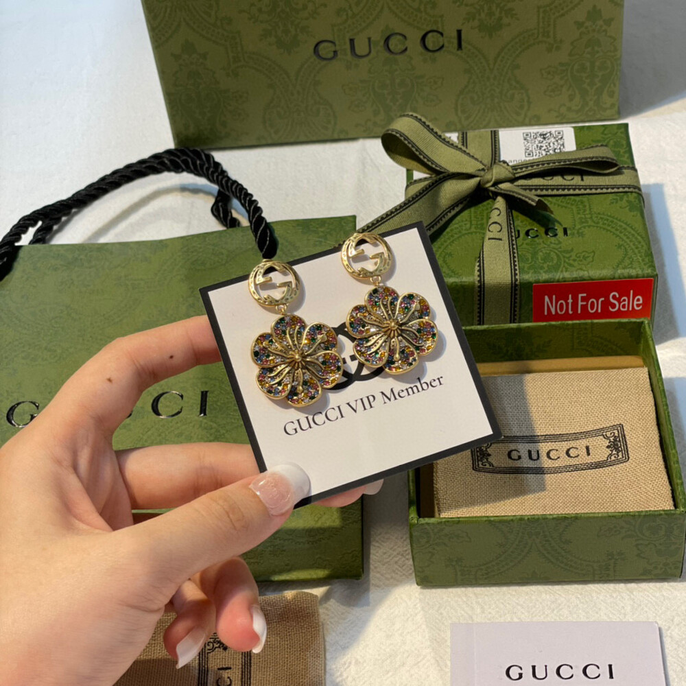 𝐆𝐔𝐂𝐂𝐈·Flower earrings Brass material color crystal retro