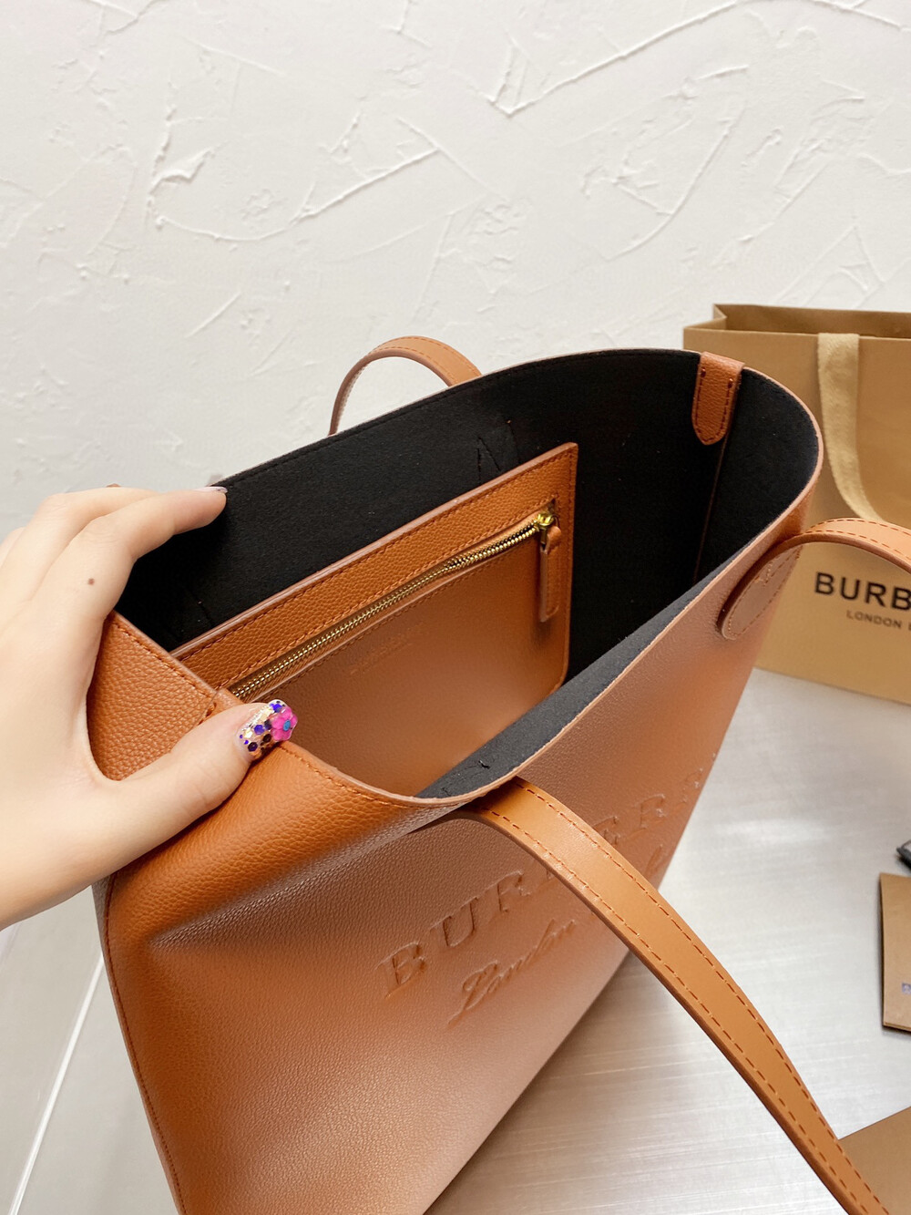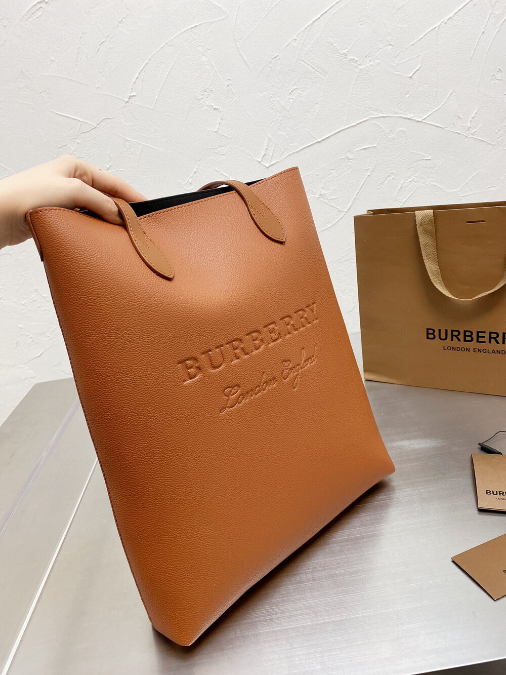 버버리 음각 쇼퍼백