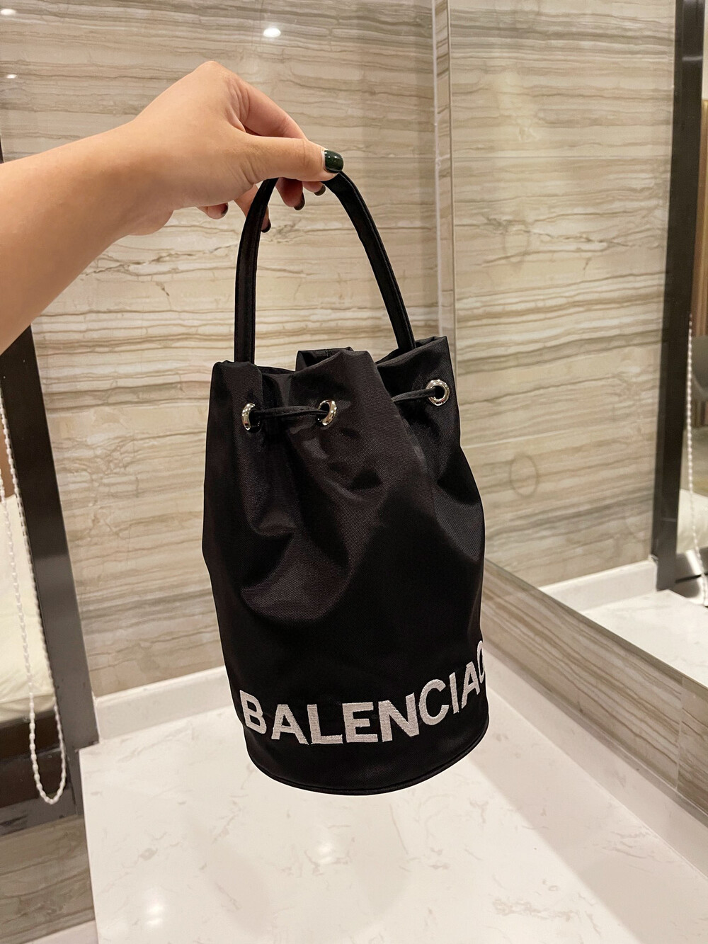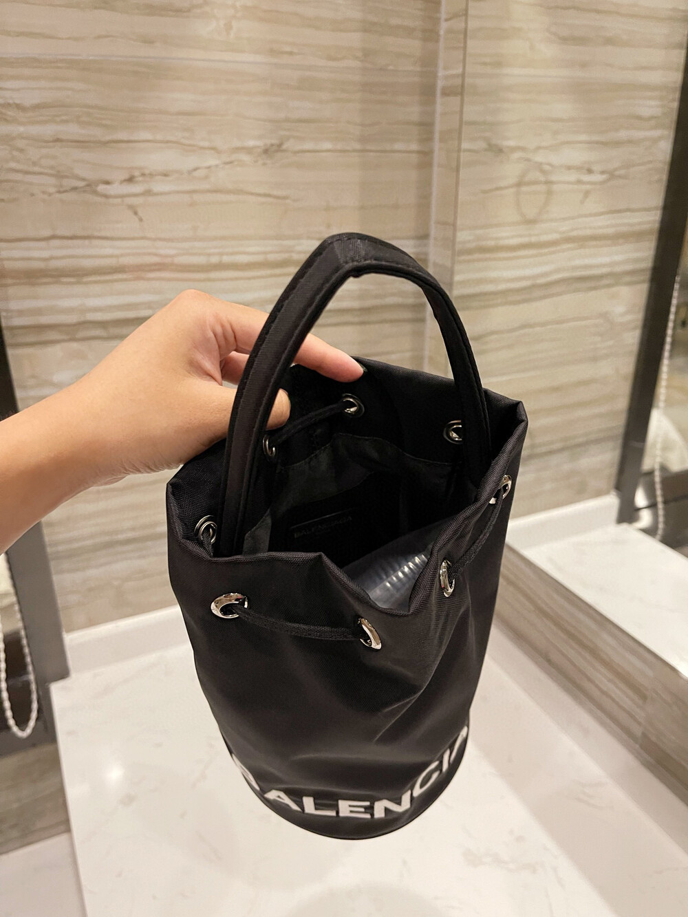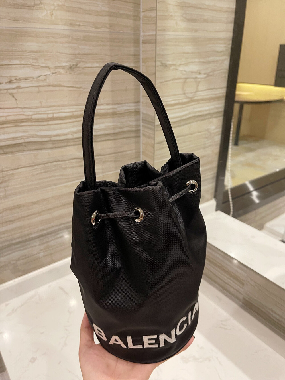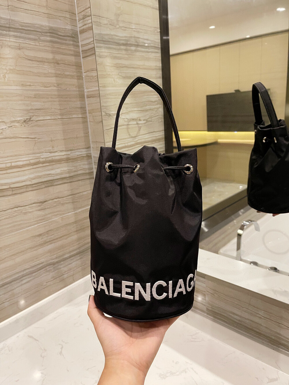 The BALENCIAGA small bucket bagIt is made of canvas and has a very light weight, but don’t look at the small one, it’s actually quite fit. Everyday wallet, lipstick, balm, tissues, earphones are all put in there is room, and there is an inner pocket for cards.It can be hand-carried or has a thin shoulder strap that can be cross-carried. It looks good on the back. I like it the more I look at it
