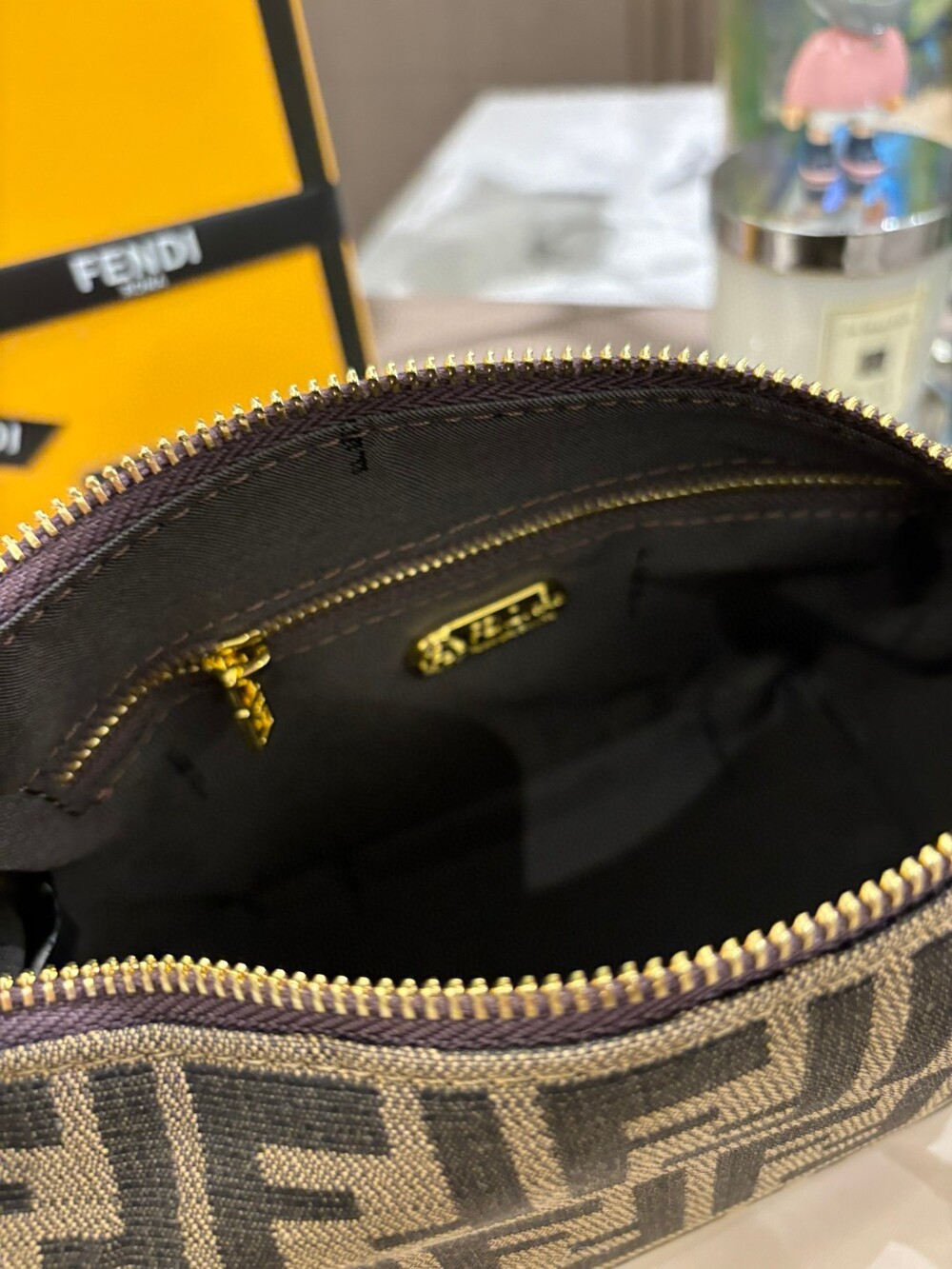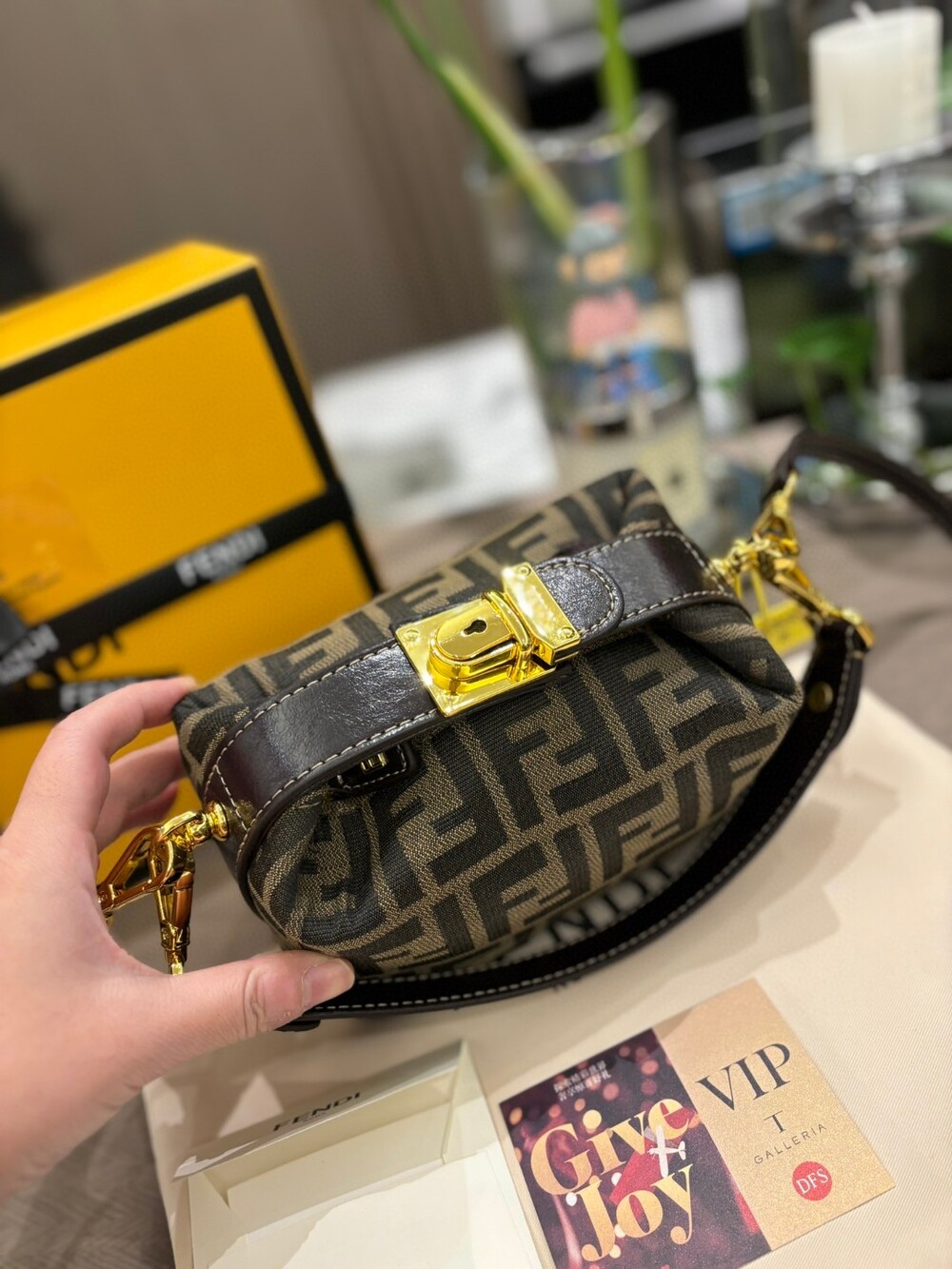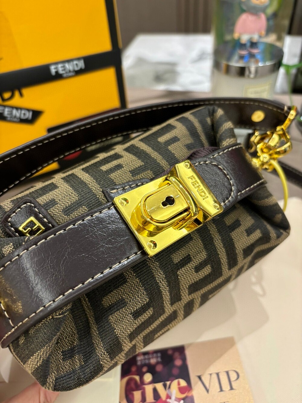 펜디 특유의 FF 캔버스 패턴과 작지만 단정한 구조감이 어우러져,