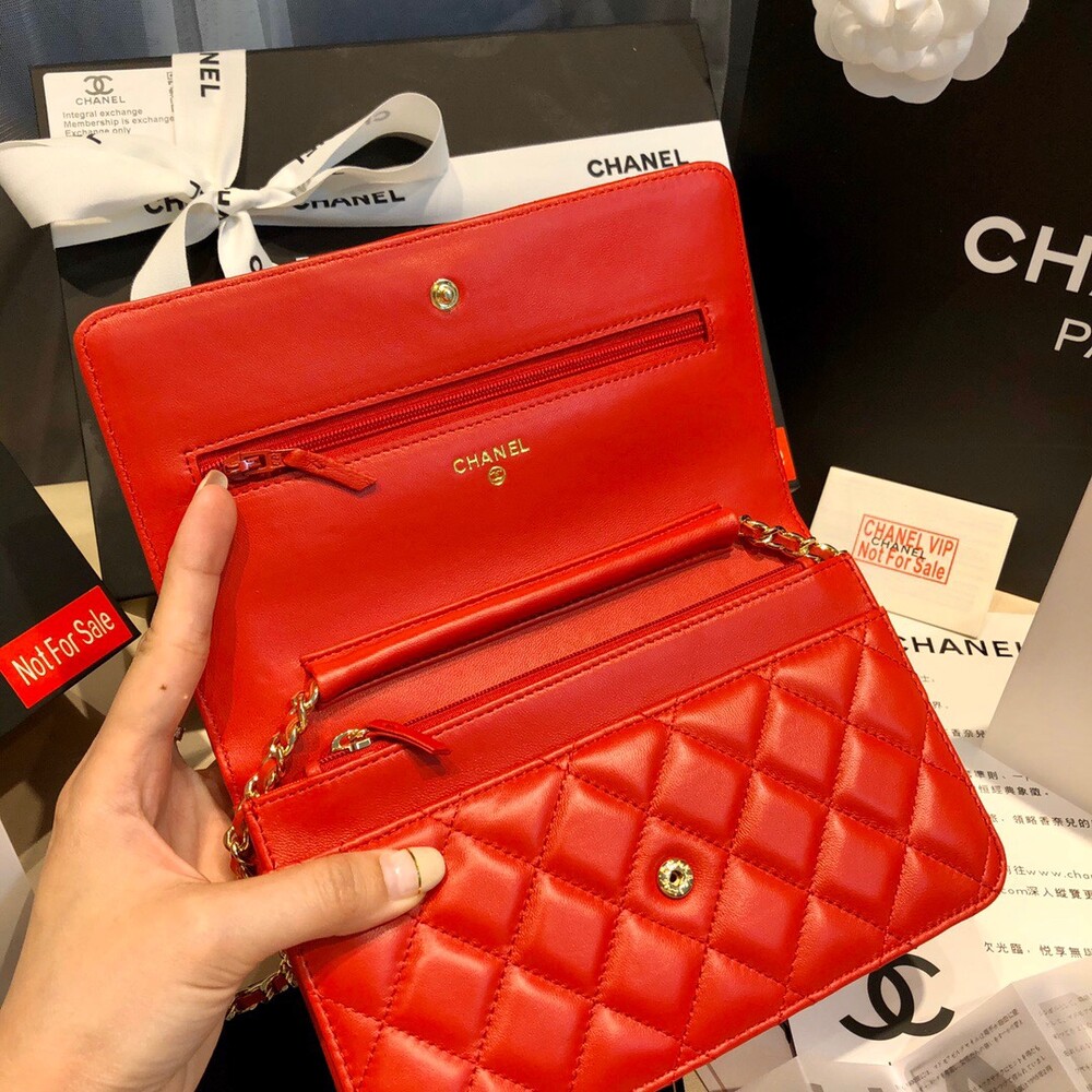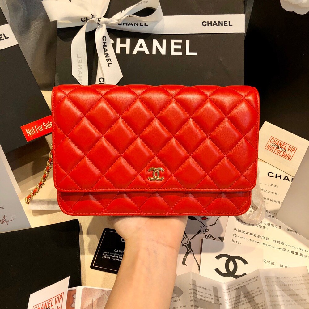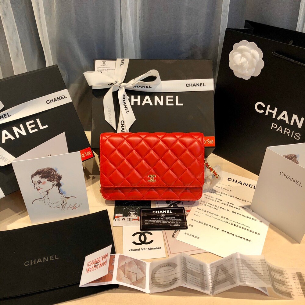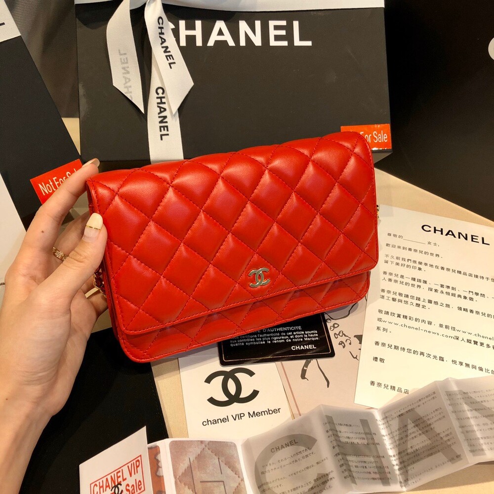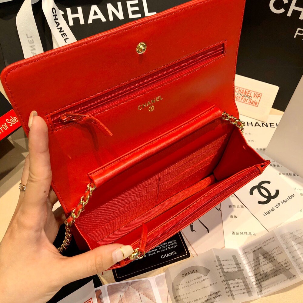 CHANEL·Overseas Senior VIP Member Privilege WOC Series "Jucai" Fortune Pack-Size 12.5x19.5x3.5cm-Capacity: Six Card Slots, One Storage Layer, One Zipper Interlayer, Two Ticket Holders-The total length of the shoulder strap chain is 140cm (manual measurement) -All-steel fine engraving and thick-plated 24k real gold gold buckle made of pure sheepskin-Gold buckle and silver buckle (the picture is a red leather gold buckle)-A full set of packaging with high-level VIP points Radiation security stickers can be used as handbags, shoulder and oblique copy can be super A versatile model. This wealthy bag is for the preference of tall girls and also a welfare bag for short girls. You can cross adjust the straps in the bag or adjust the length with hair loops (the way to do it yourself~)
